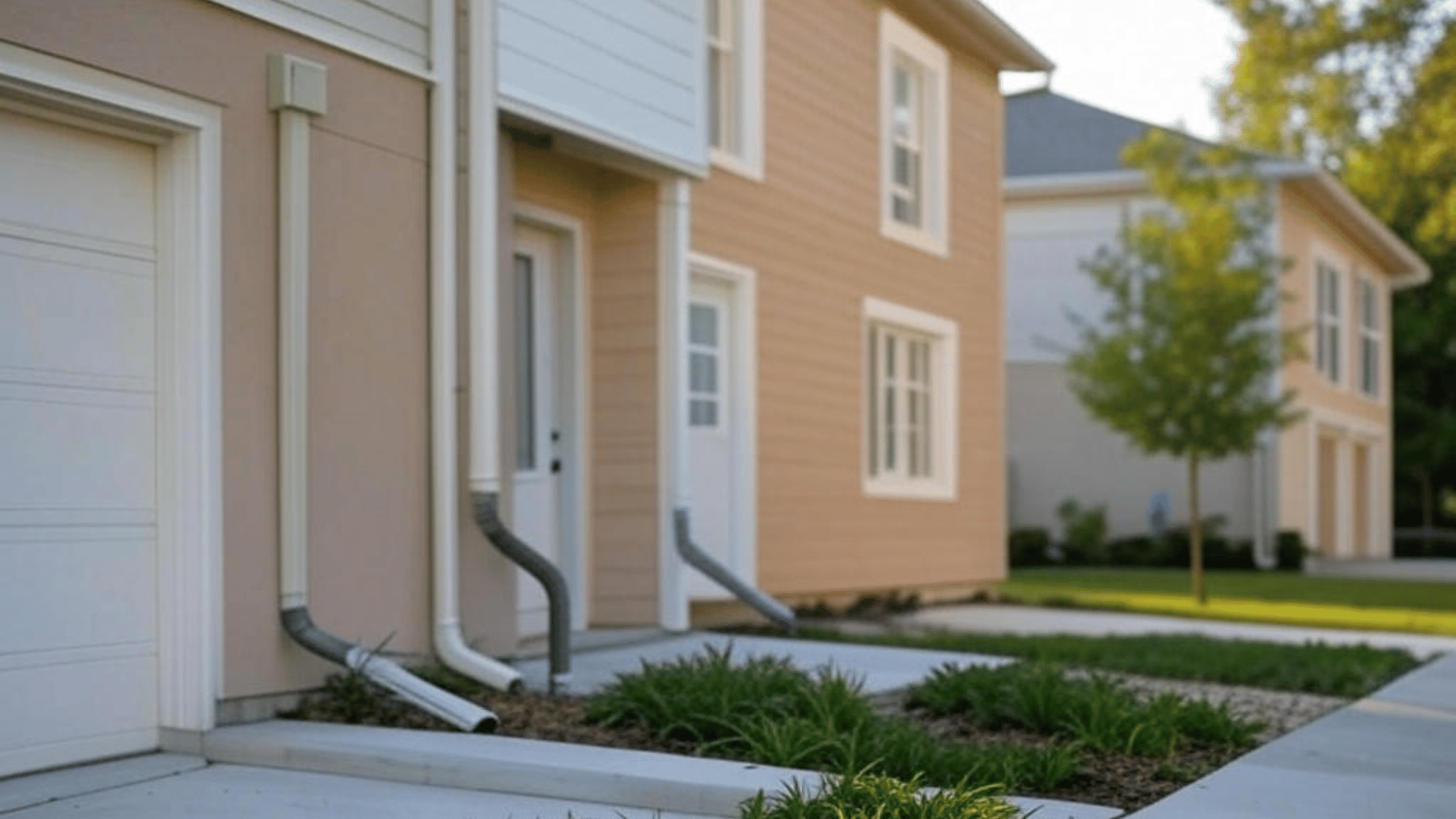 Strategically placed downspouts redirected rainwater safely away from the foundation, preventing soil erosion and flooding.